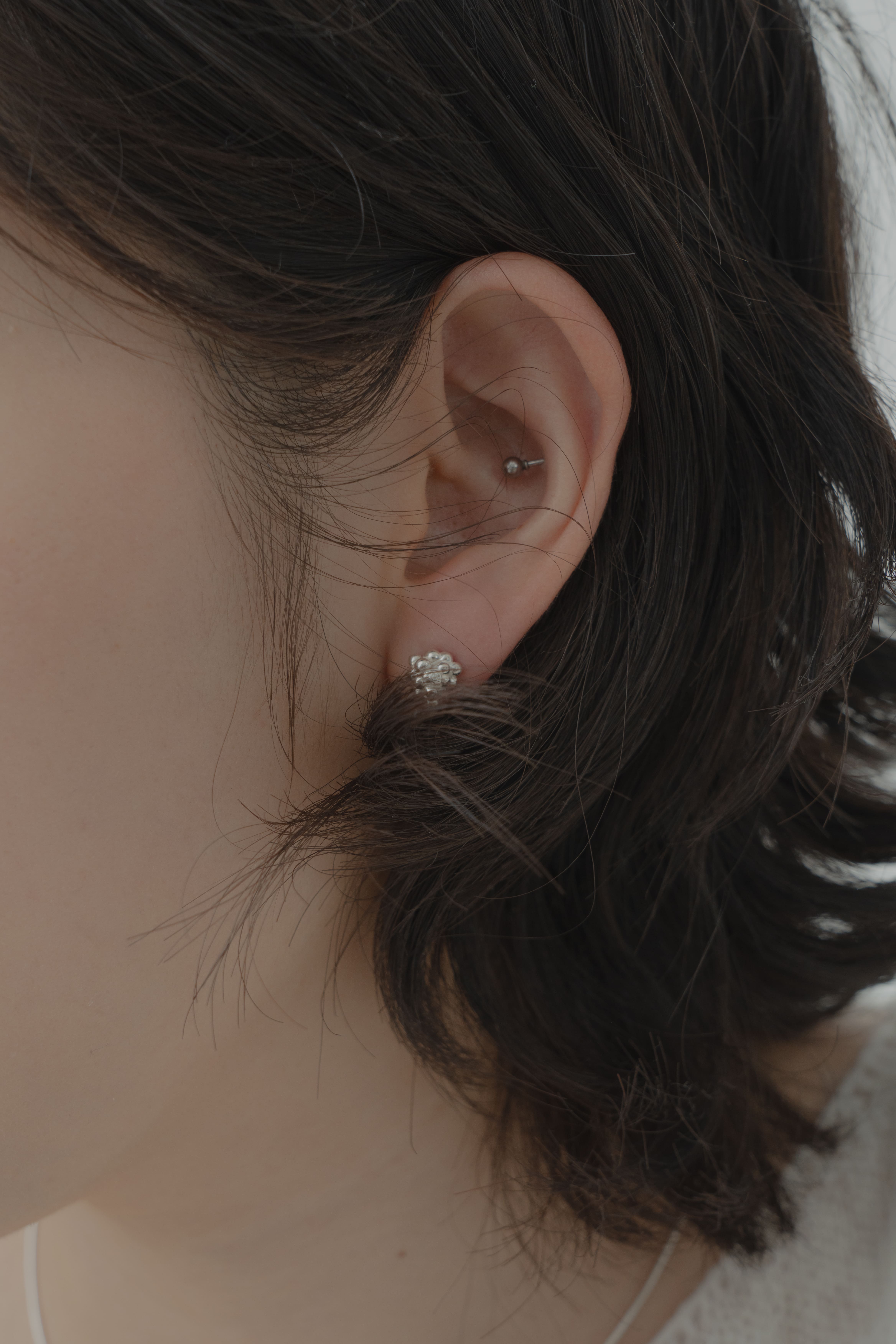ぷくっとしたフォルムが印象的な、胞子をモチーフにしたピアス。シンプルなラインの中に、円形が生み出すエレガントな美しさが際立つデザインです。洗練された佇まいで、デイリーから特別なシーンまで幅広く活躍します。 - 925 sterling silver