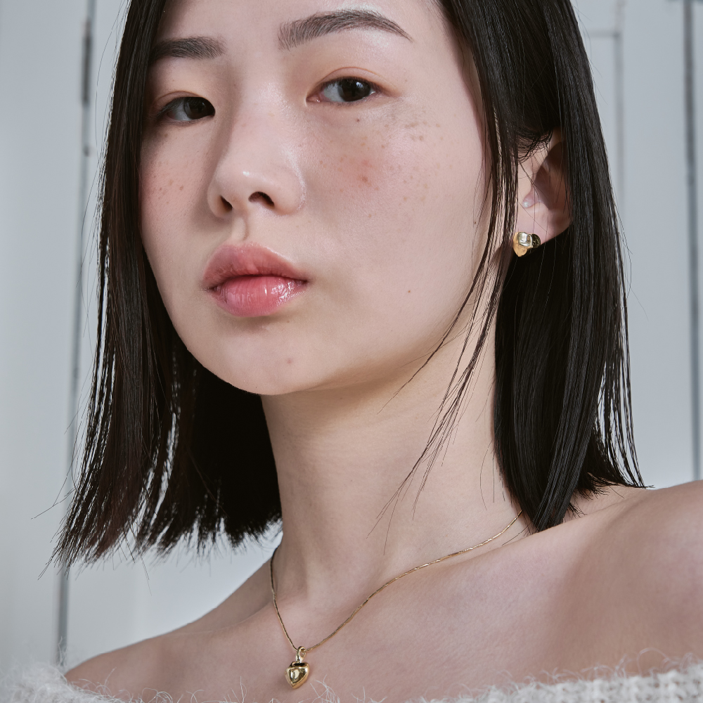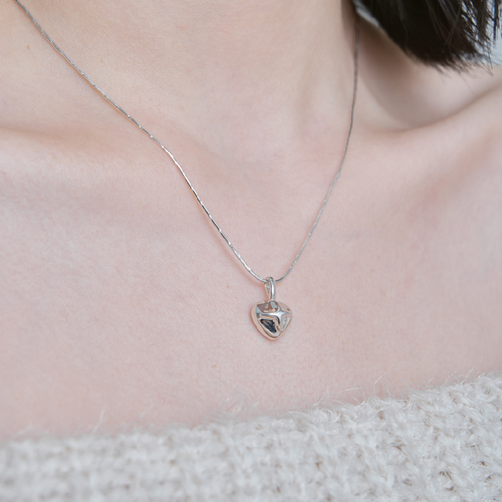 ふっくらとしたハートペンダントに、きらめく陽の光を閉じ込めたSun love necklace。 愛らしいフォルムのペンダントに、洗練されたカッティングチェーンを合わせ、シンプルながらも幅広く活躍するデザインに仕上げました。デイリーから特別な日まで、さりげなく胸元を彩ります :) * 925 sterling silver * gold or silver color * pandant 15*10mm * chain 42cm