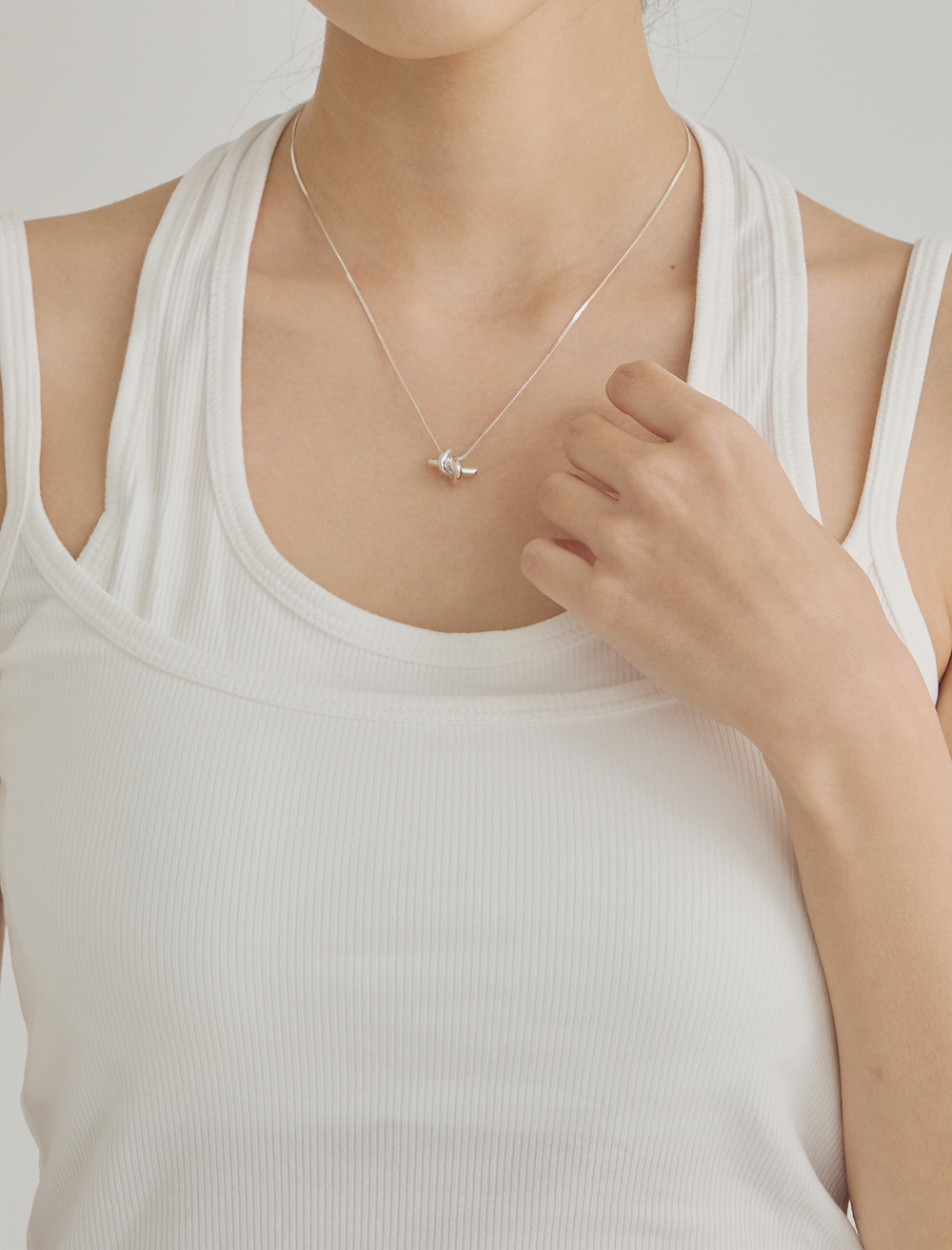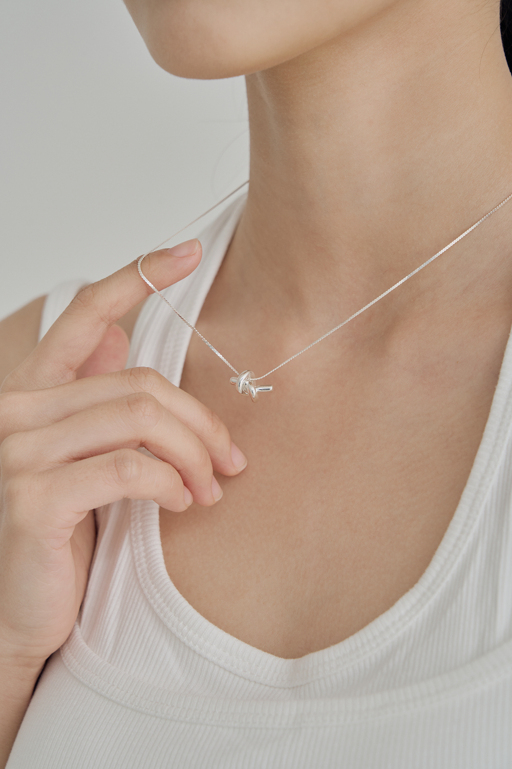最も基本的な結び目の形を小ぶりに表現したネックレス。 余計な装飾をそぎ落とし、形そのものにこだわったデザインで、ひとつで着けても、他のネックレスと重ねても自然に馴染みます。日常から特別な日まで、シーンを選ばず寄り添う結び目デザインです。 * 925 sterling silver * pandant 15*10mm * chain 42cm