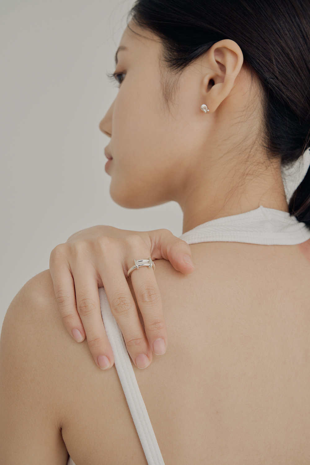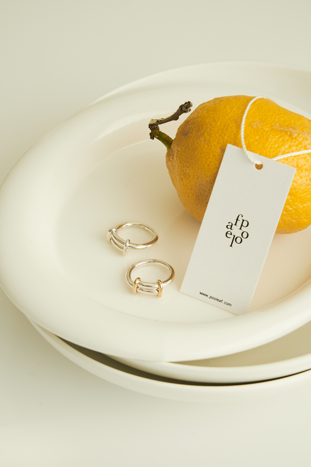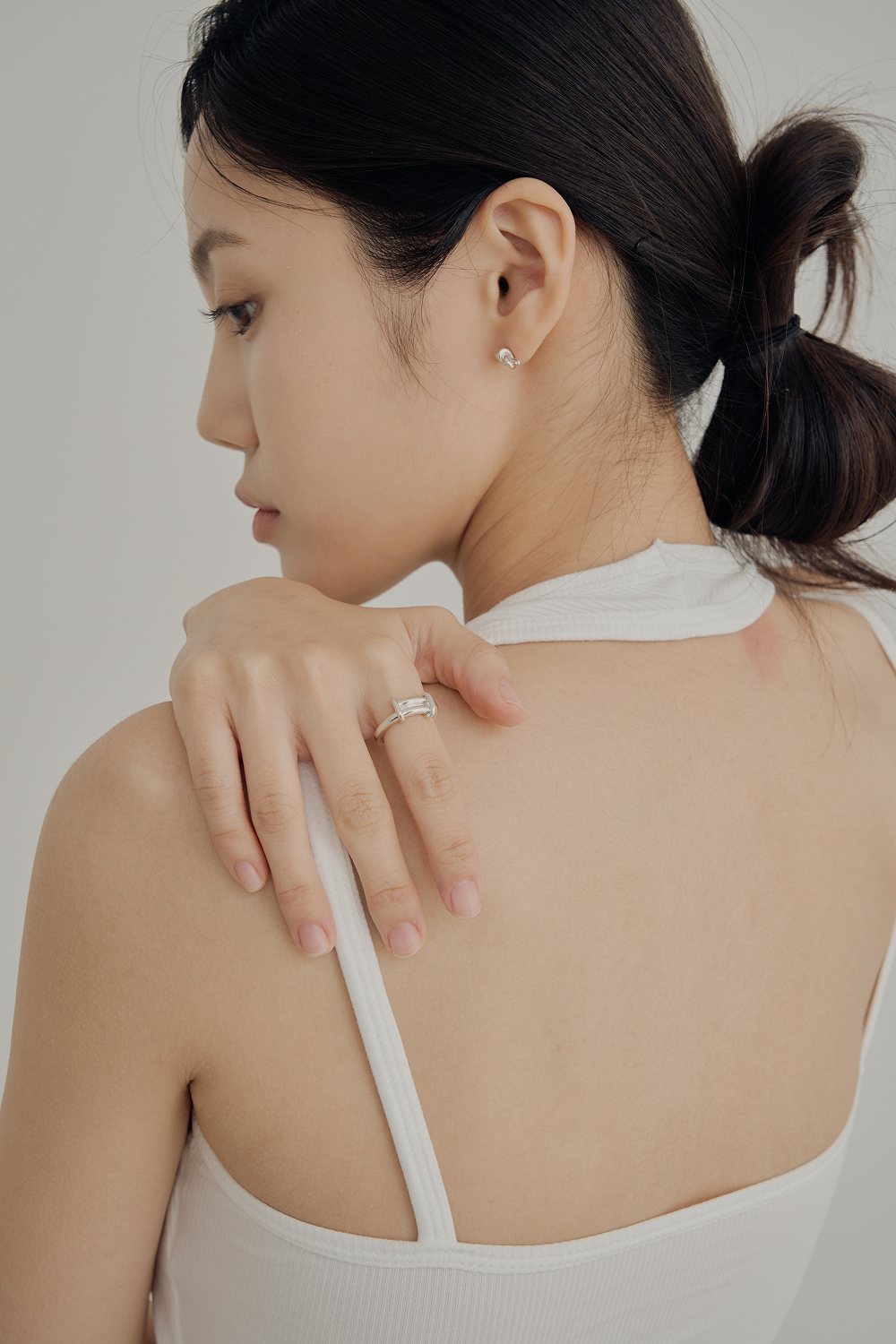 異なる二つの面が重なり合い、一つに結ばれる構造のリング。 程よい厚みのあるリングに交差する面を重ね、すでに結ばれた誓いがより強い結束へとつながる瞬間を象徴したデザインです。装飾ではなく構造そのものをポイントにし、ひとつで着けるだけでも確かな存在感を放ちます。 * 925 sterling silver * gold point or silver point * body 3mm/front 10*8mm
