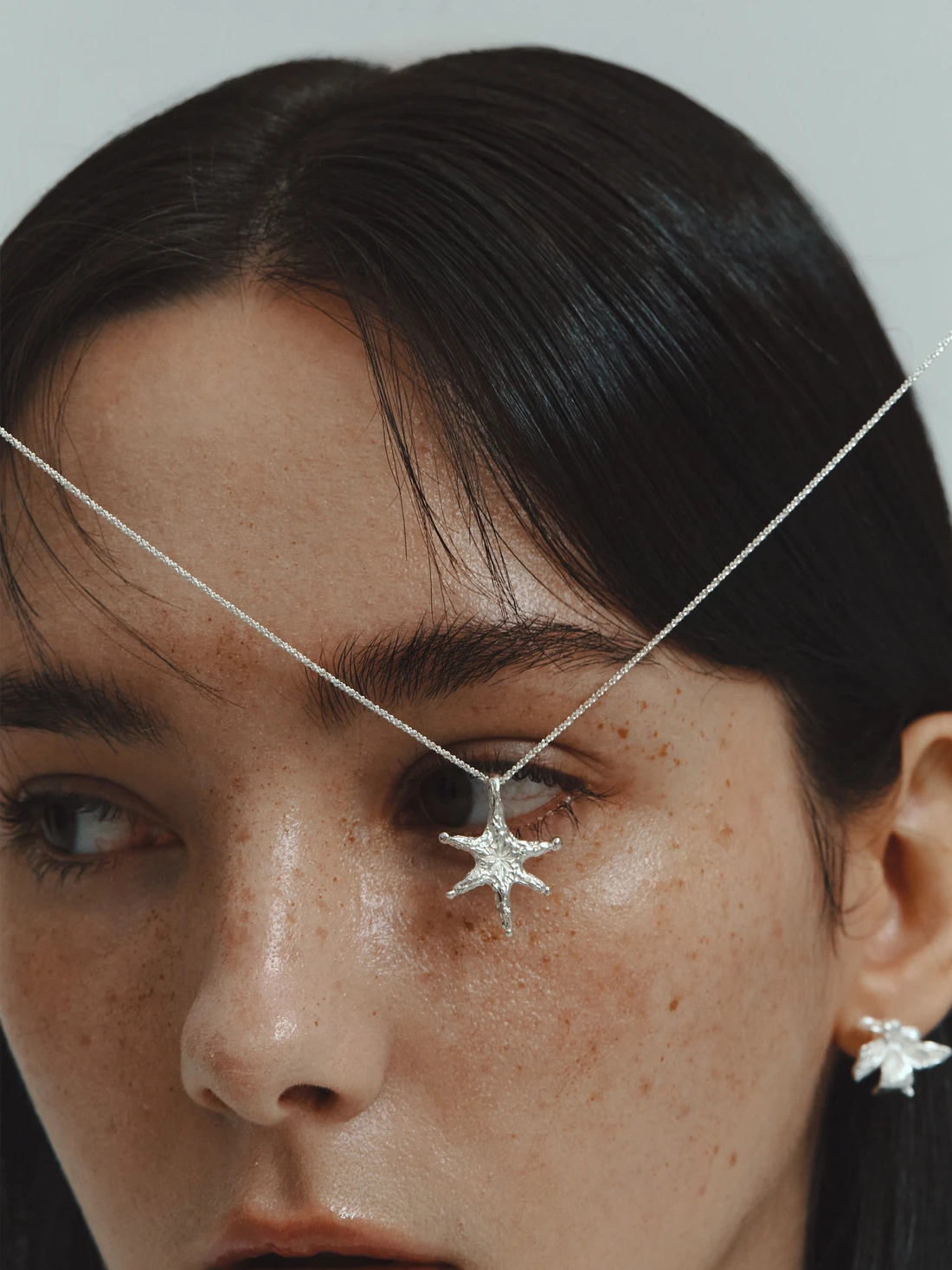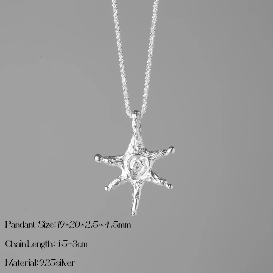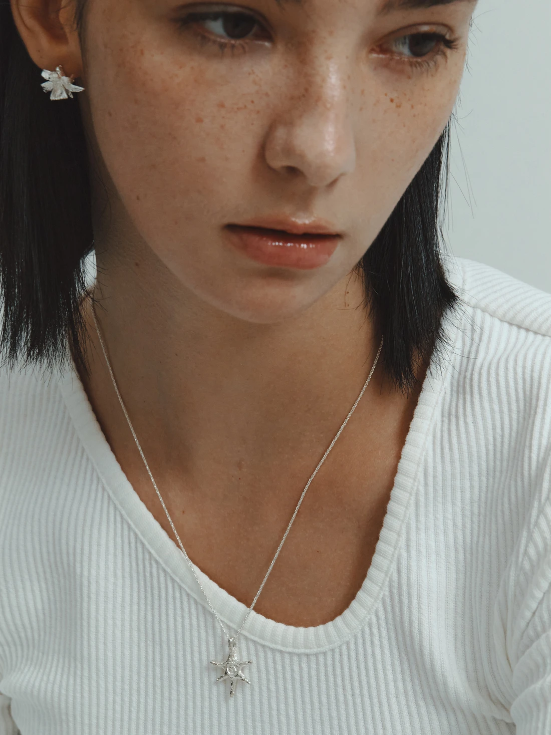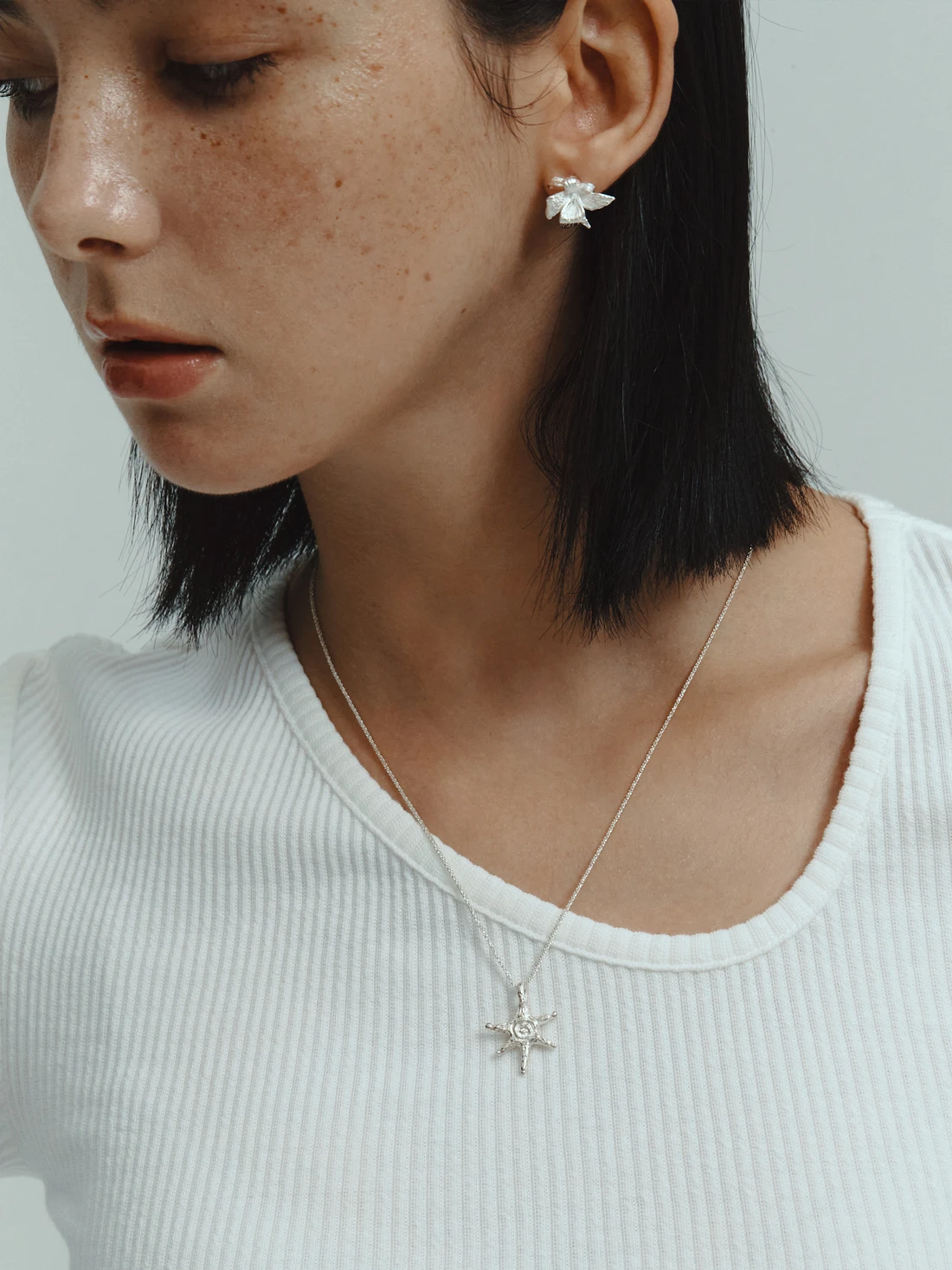 ペンダントの表面と裏面に、太陽と星のモチーフがそれぞれ刻まれたネックレスです。