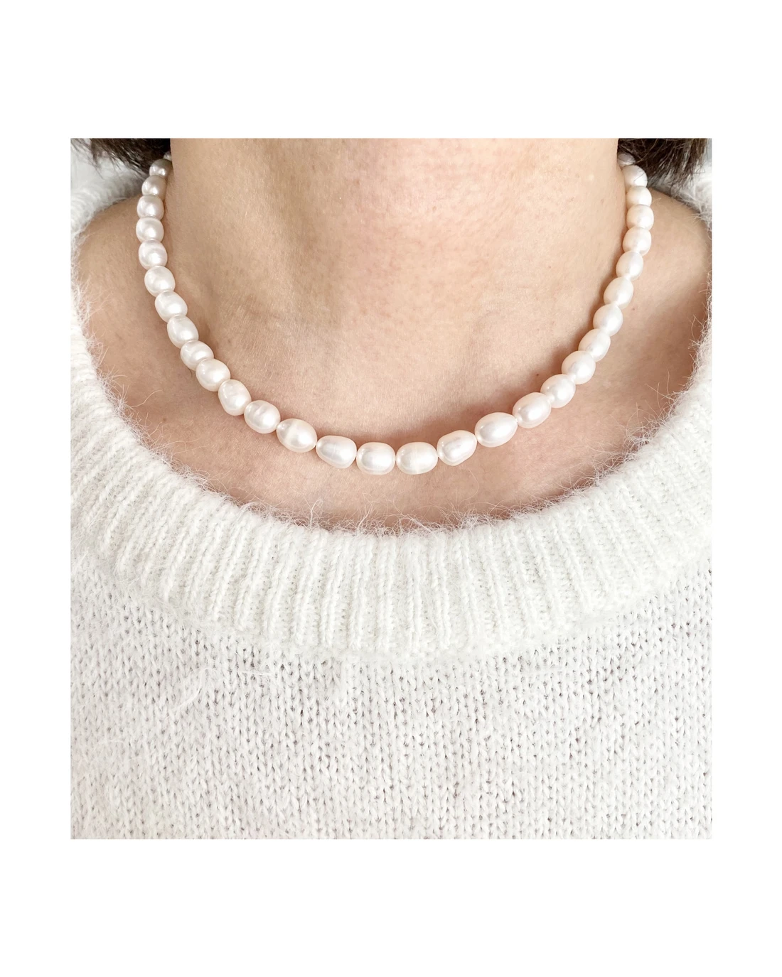 本商品は、一般的なイミテーションパールではなく、自然な艶と奥行きを持つ淡水パールを使用したネックレスです。