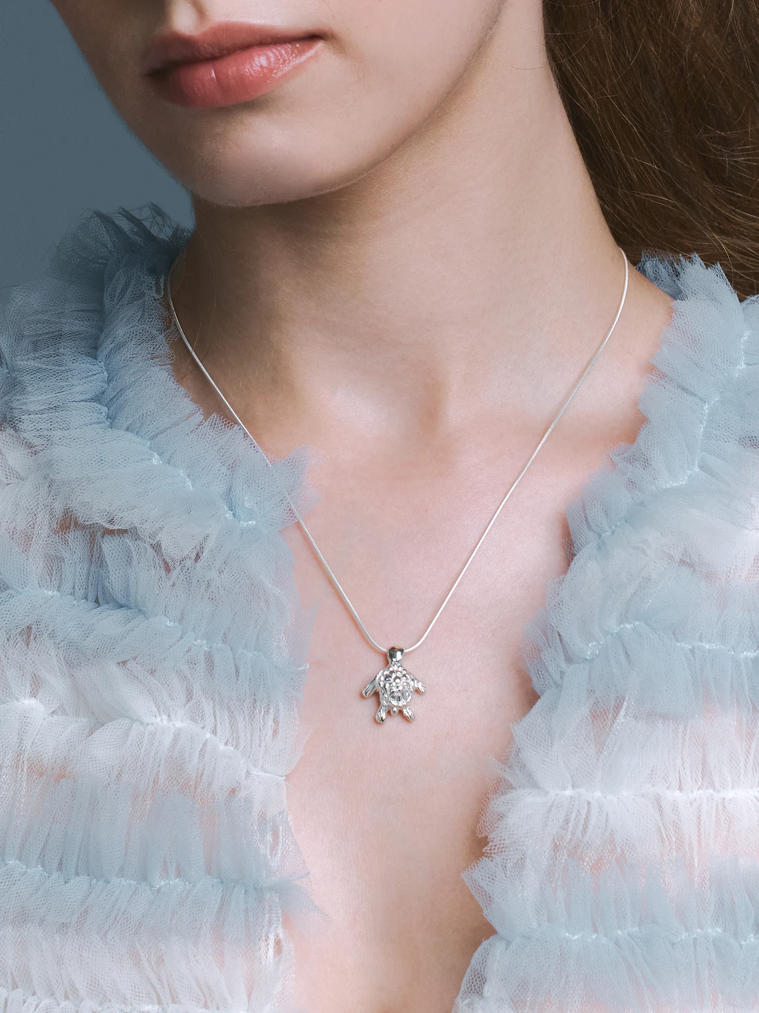 MNOのウミガメネックレスは、こうした意味を現代的な感覚で表現し、身に着ける方にポジティブなエネルギーと安らぎを届けることを願っています。