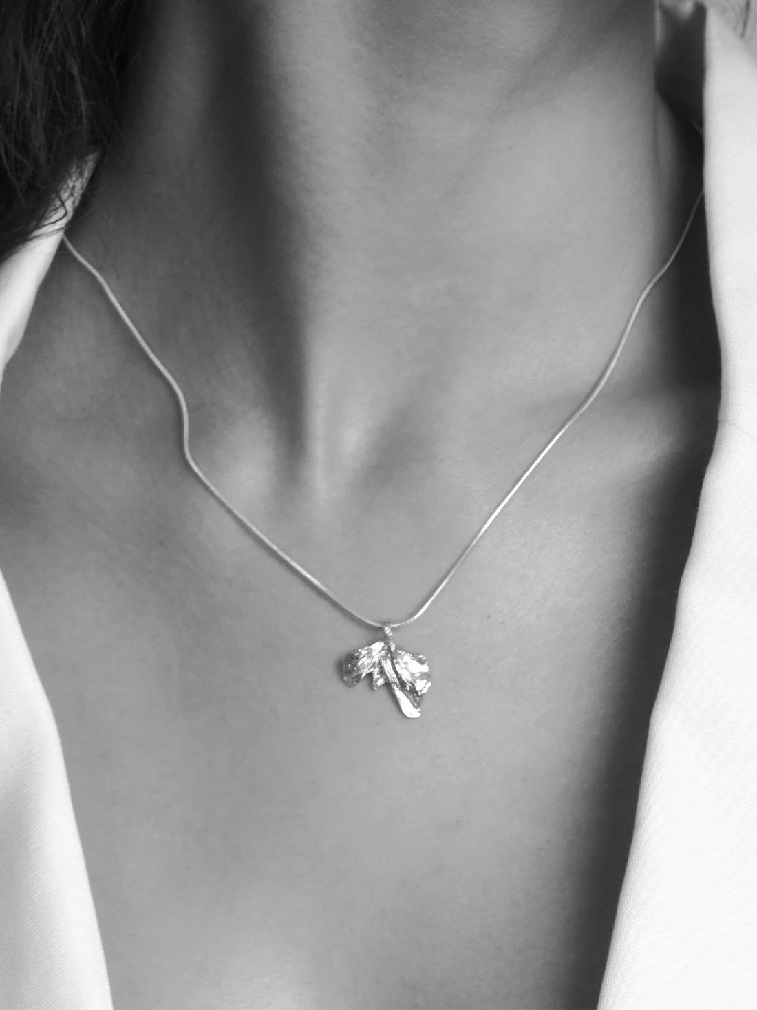 海の中に浮かぶ葉を想像して生まれたSea Leaf Necklaceは、仁寺洞のイチョウの葉をモチーフに、自然の物語をかたちにしたジュエリーです。