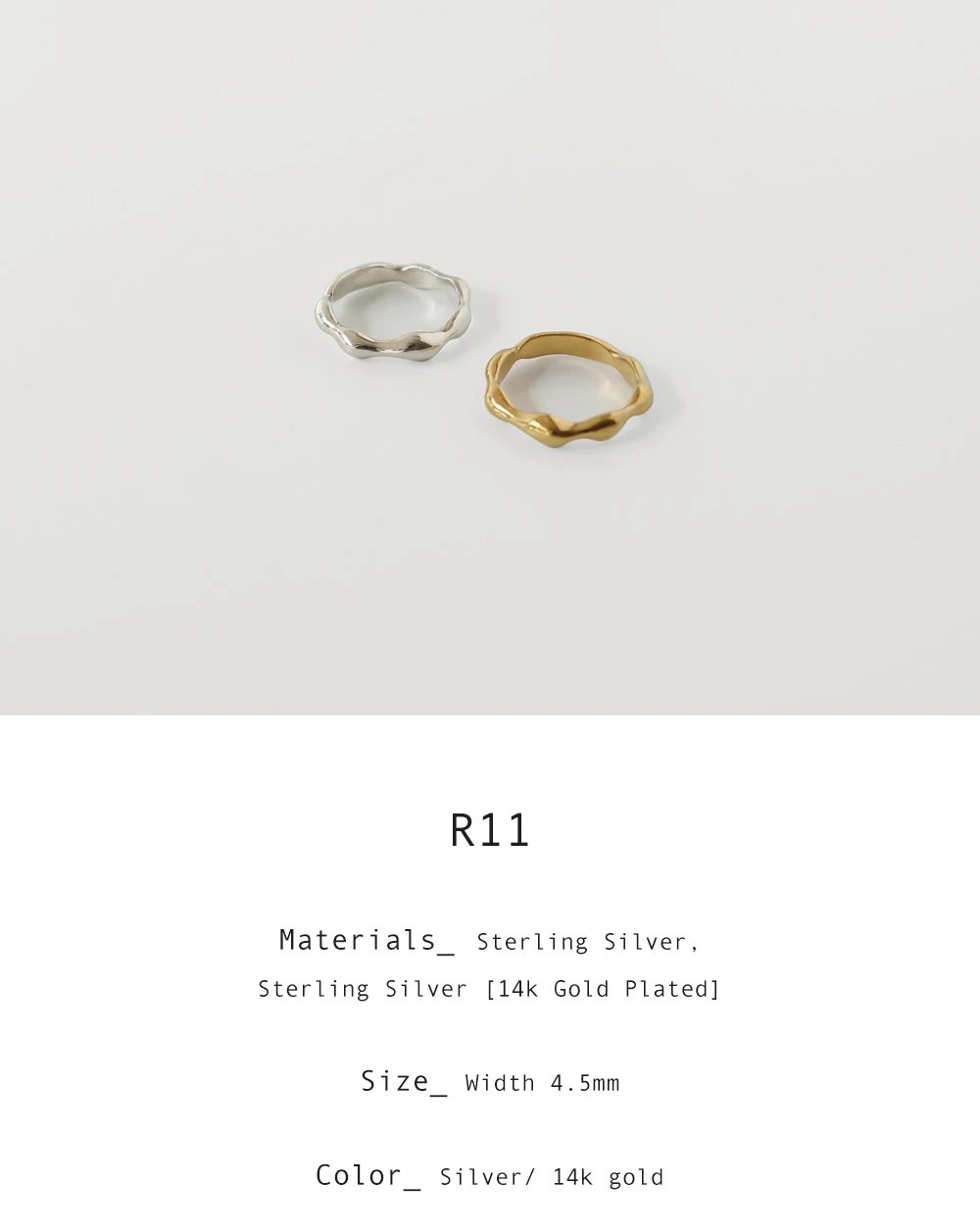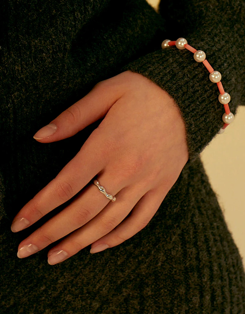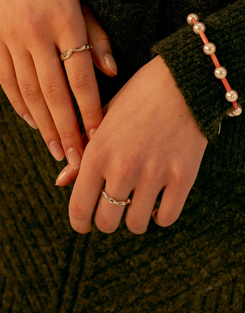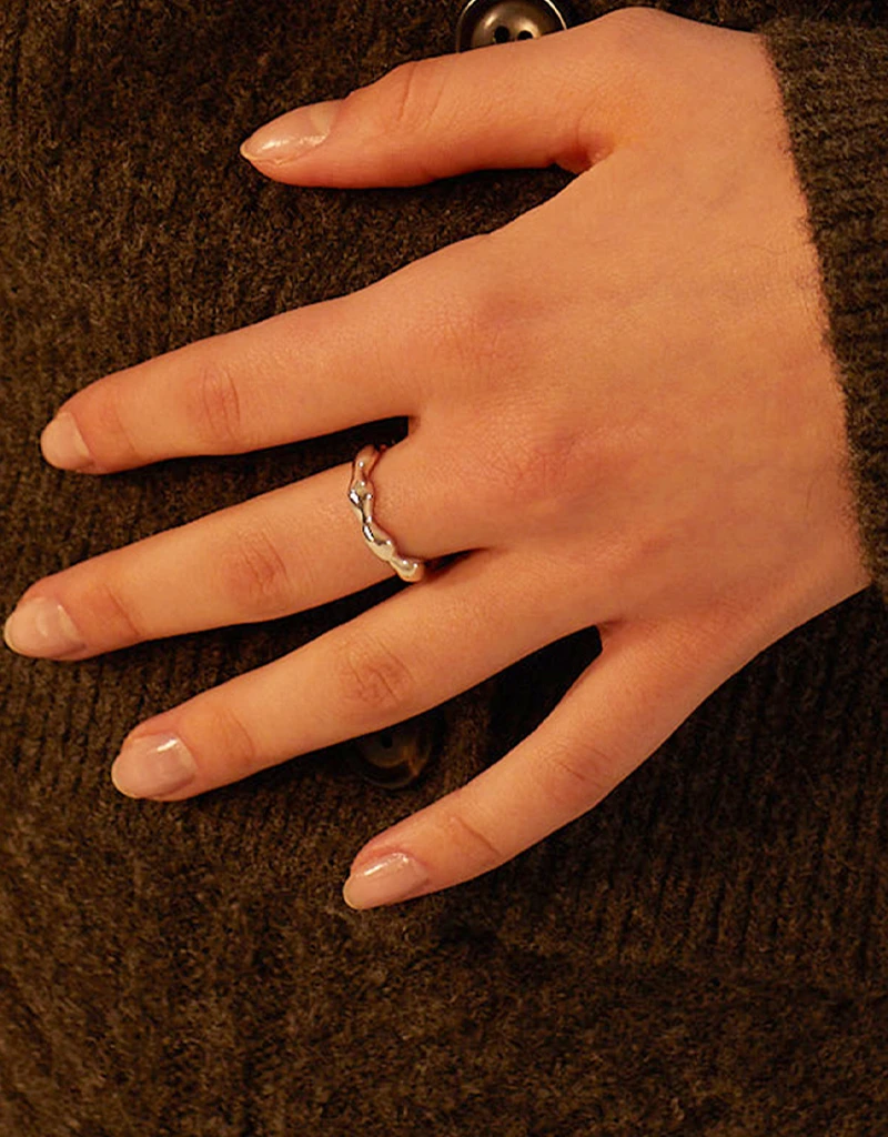 夕焼けの光の下でやわらかく揺らめく輝きをモチーフにデザインされたリング。 かすかに揺らぐようなフォルムをリングに落とし込みました。 指をやさしく包み込むなめらかな曲面で、シンプルでありながらユニークなスタイリングを演出します。