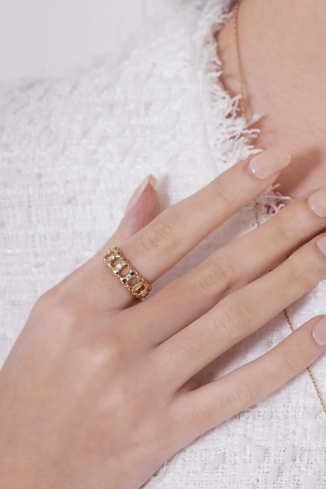 他にはあまりないデザインで、さりげないボリューム感が高級感と魅力を引き立てるリングです。
