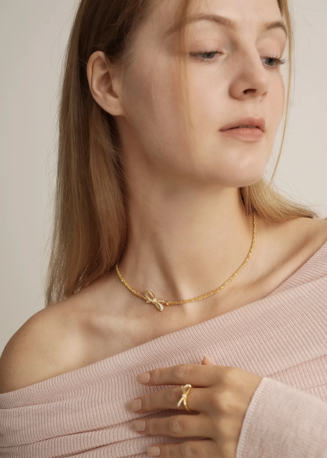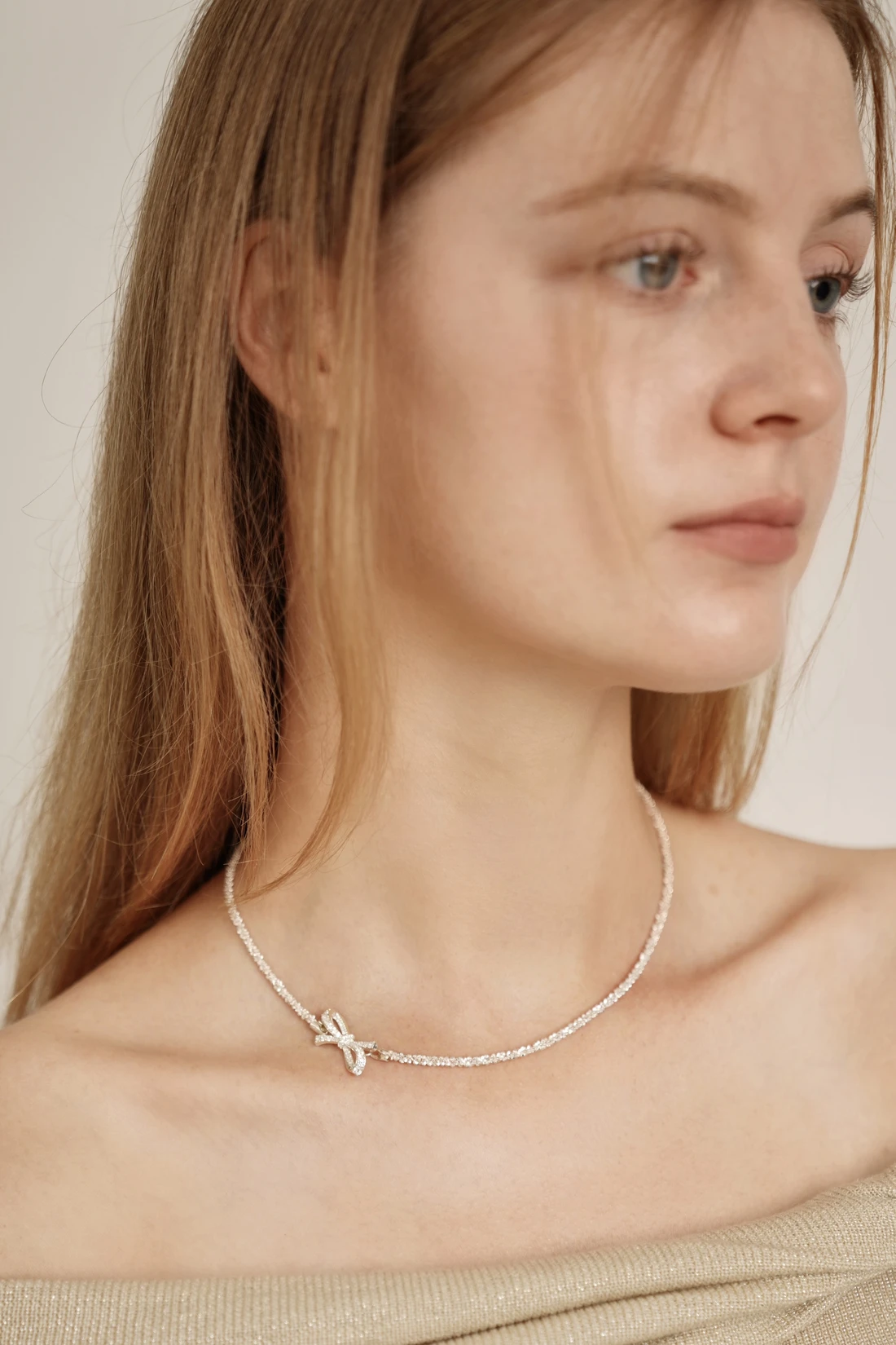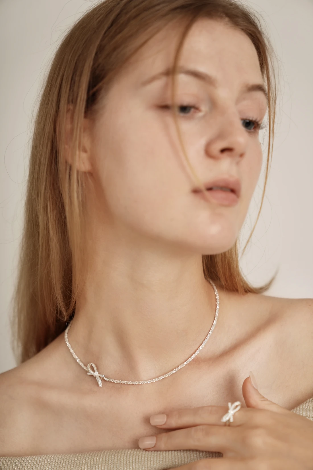 と、DEWCONGオリジナルのリボンが融合した Bornbon Necklace です。