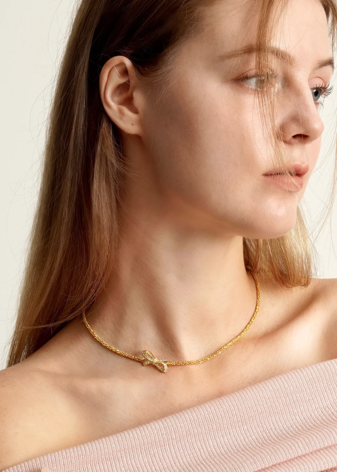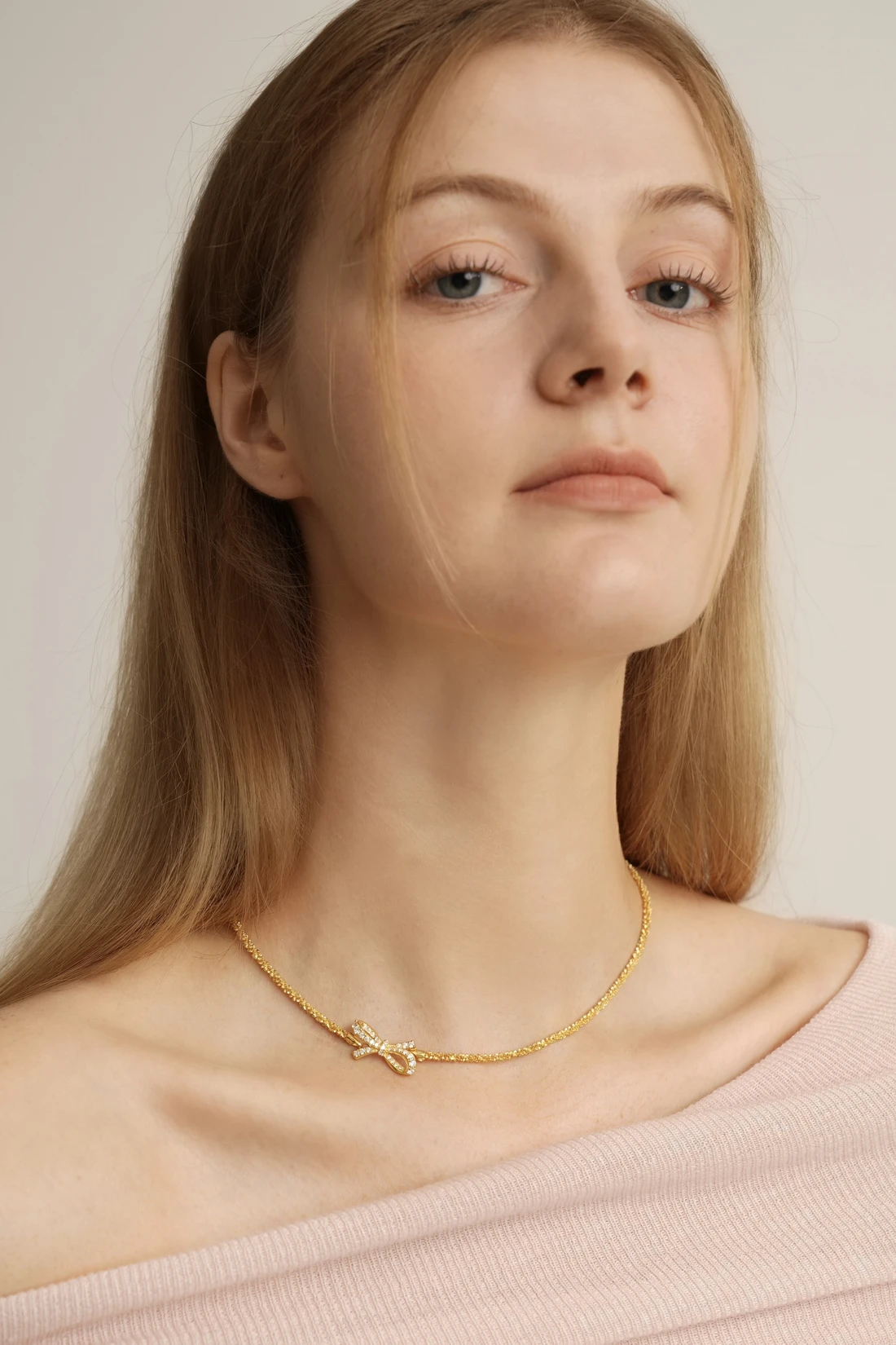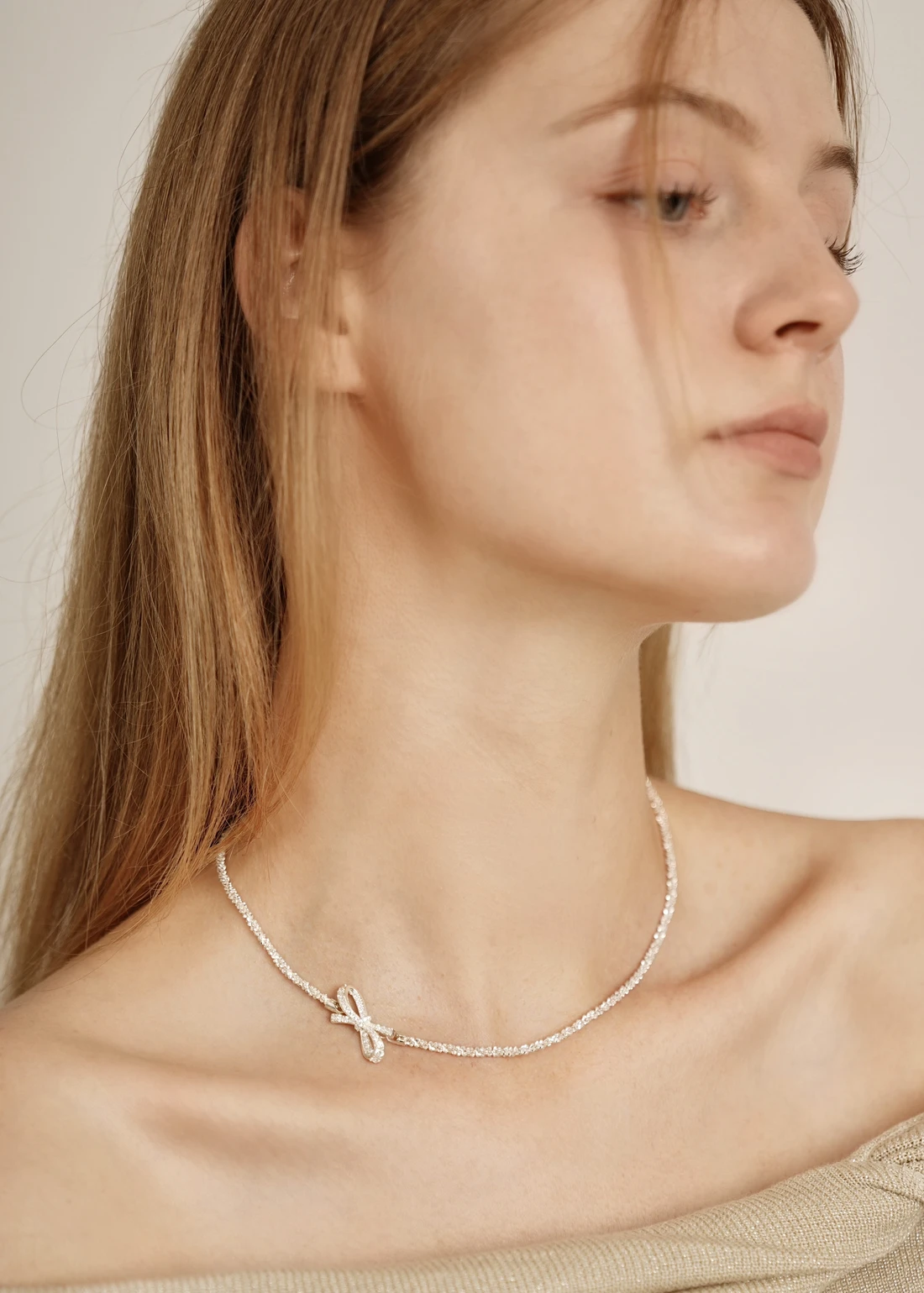 と、DEWCONGオリジナルのリボンが融合した Bornbon Necklace です。