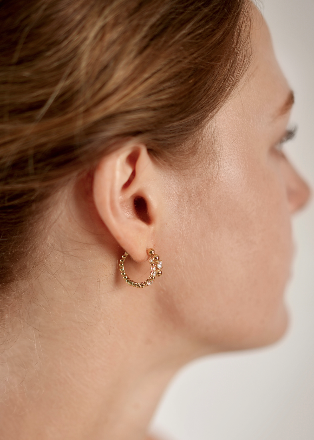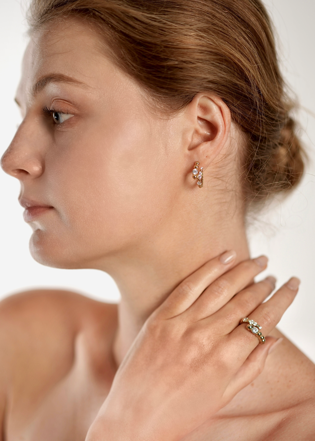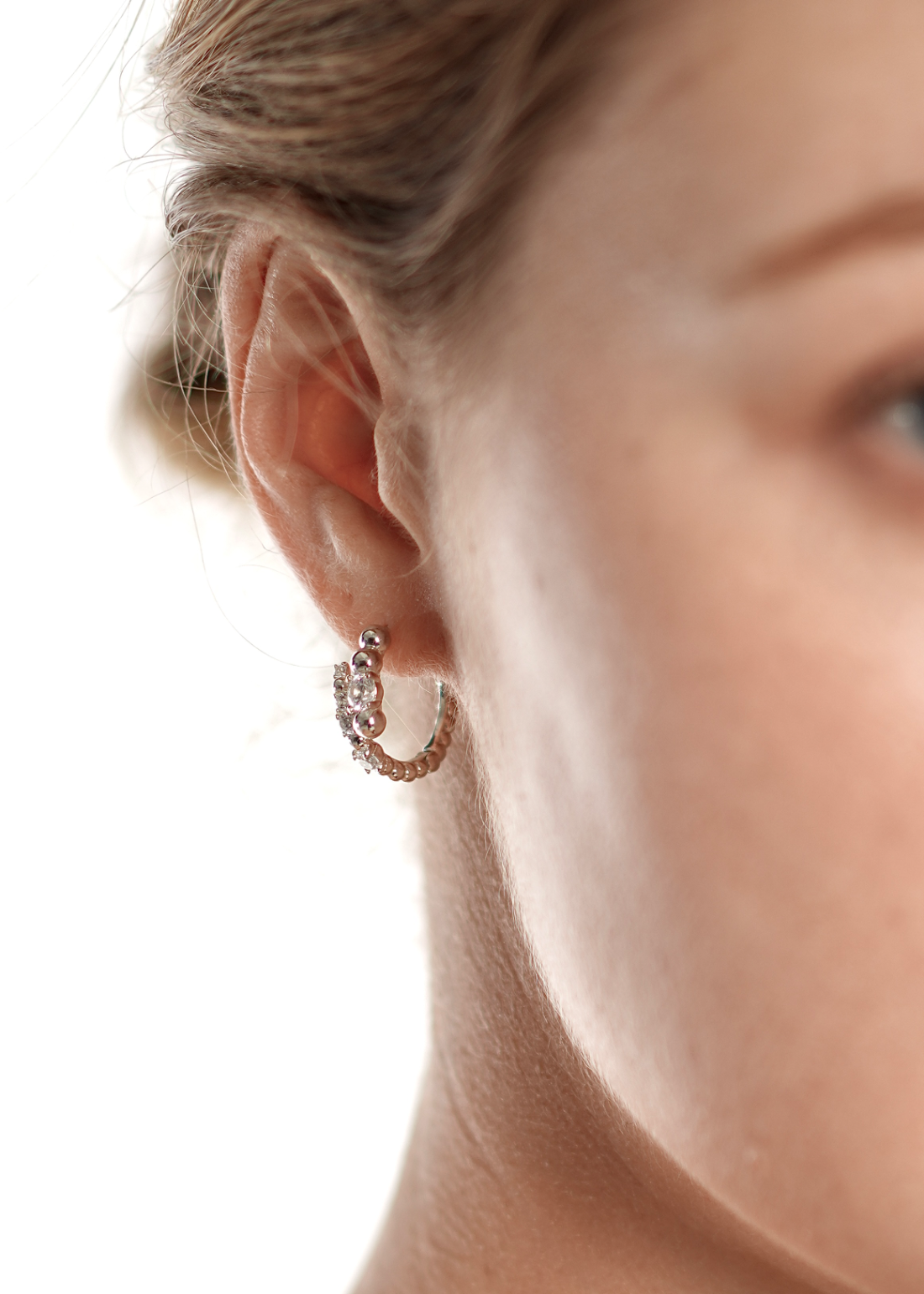 EleAのワンタッチイヤリングは、高級感がありつつも、さりげなくポイントを添えるデザインです。