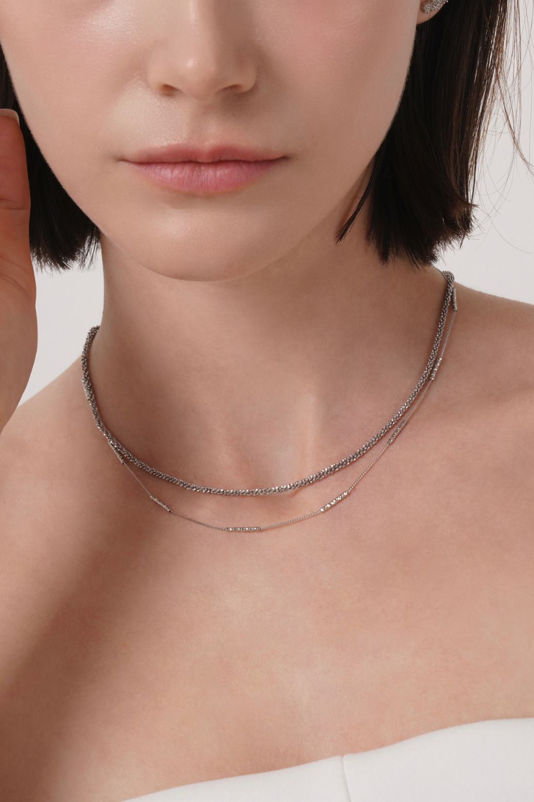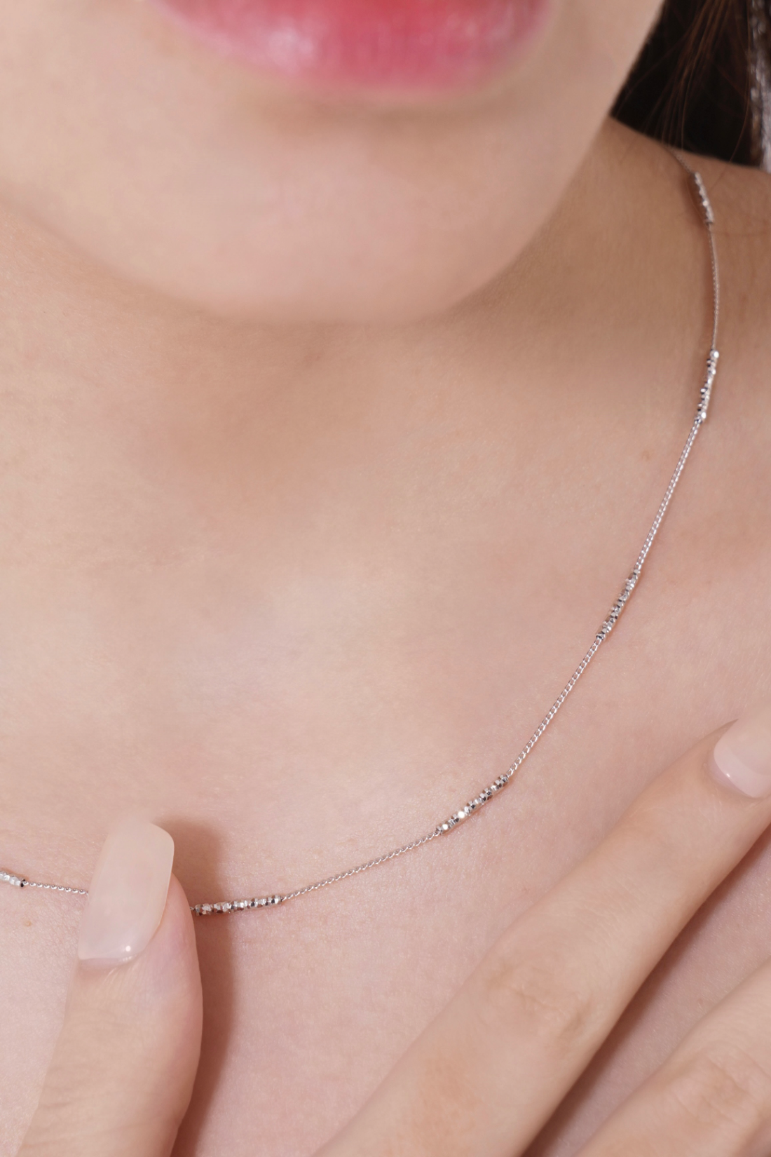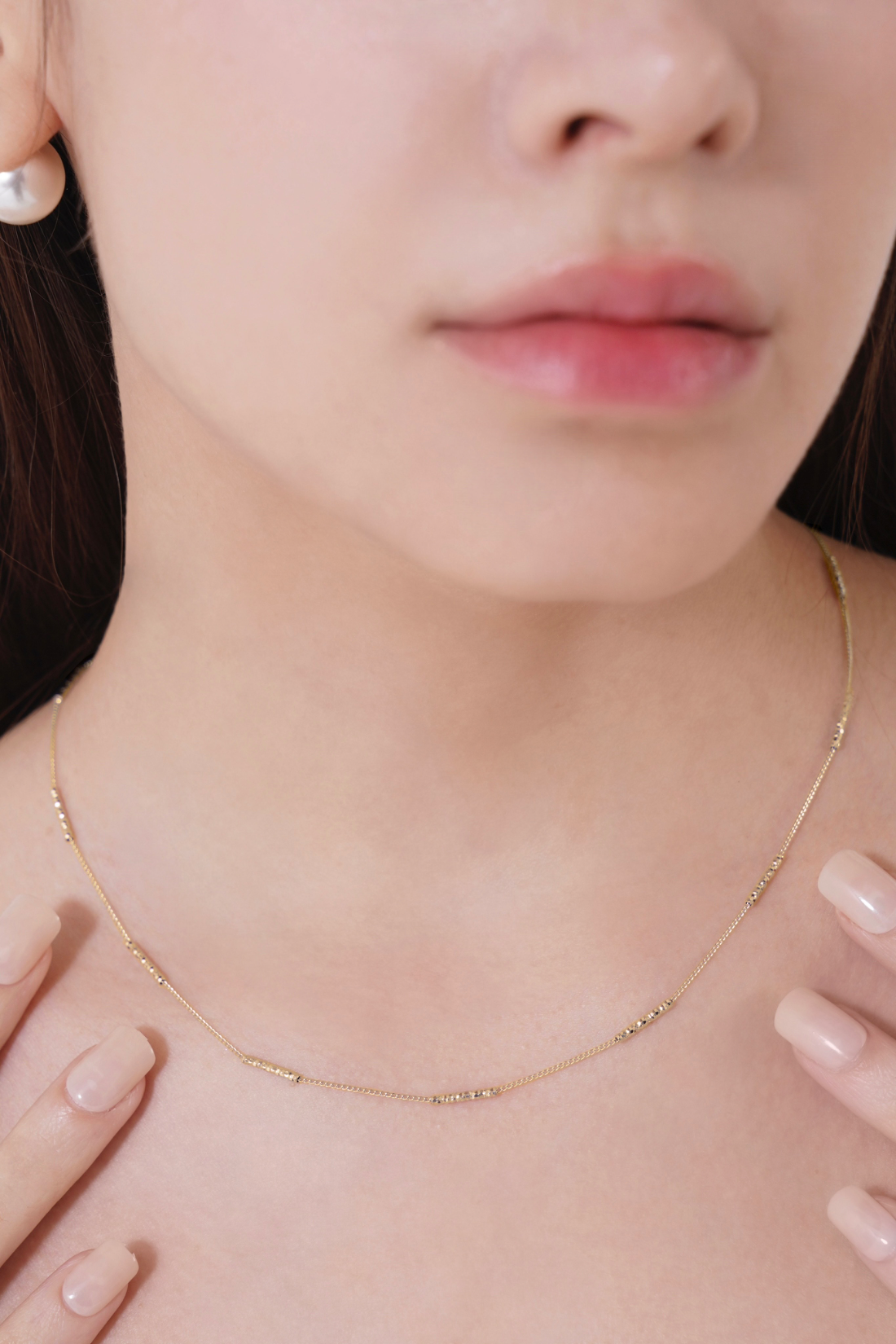 カッティングが施されたスティックチェーンが、さりげなくきらめくネックレス。
