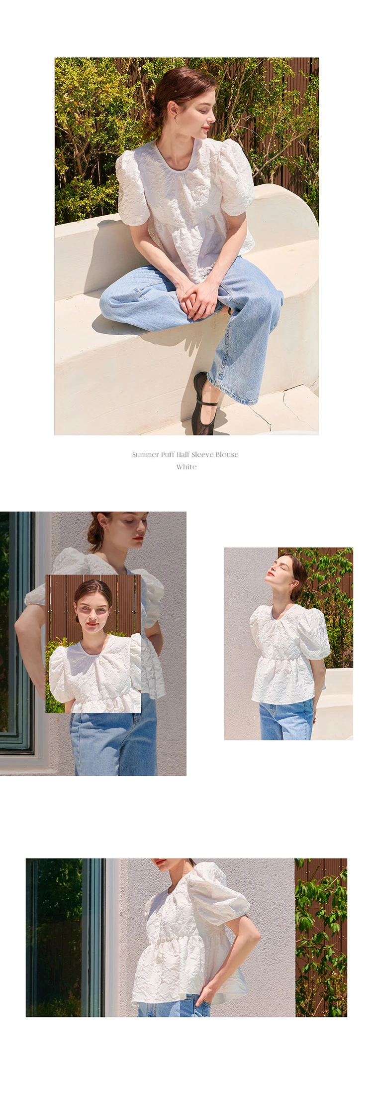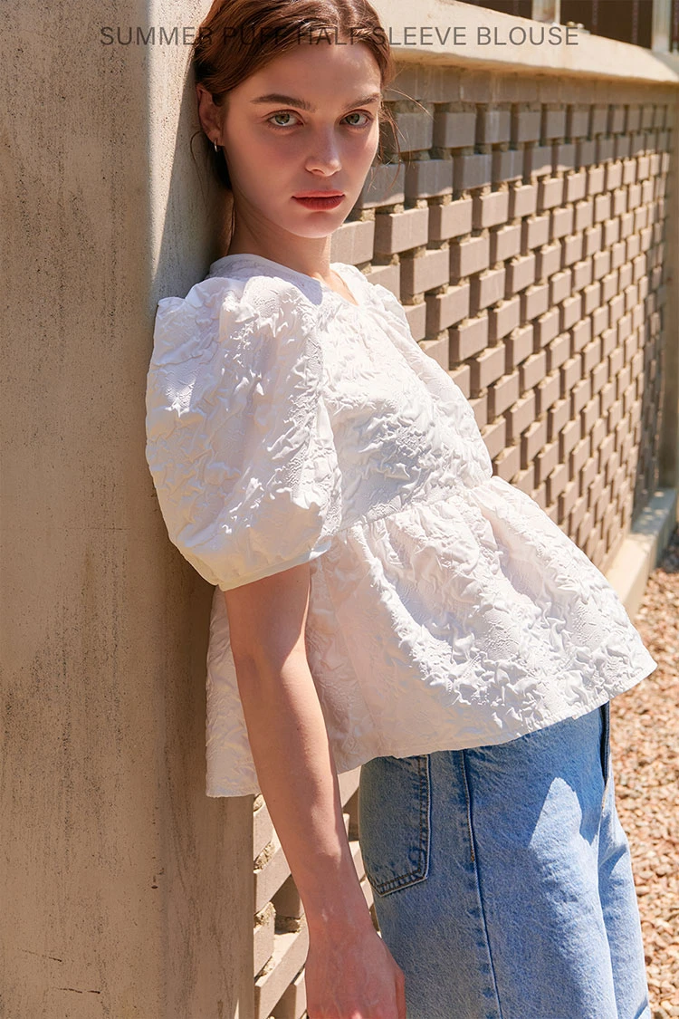 SUMMER PUFF HALF SLEEVE BLOUSE WHITE