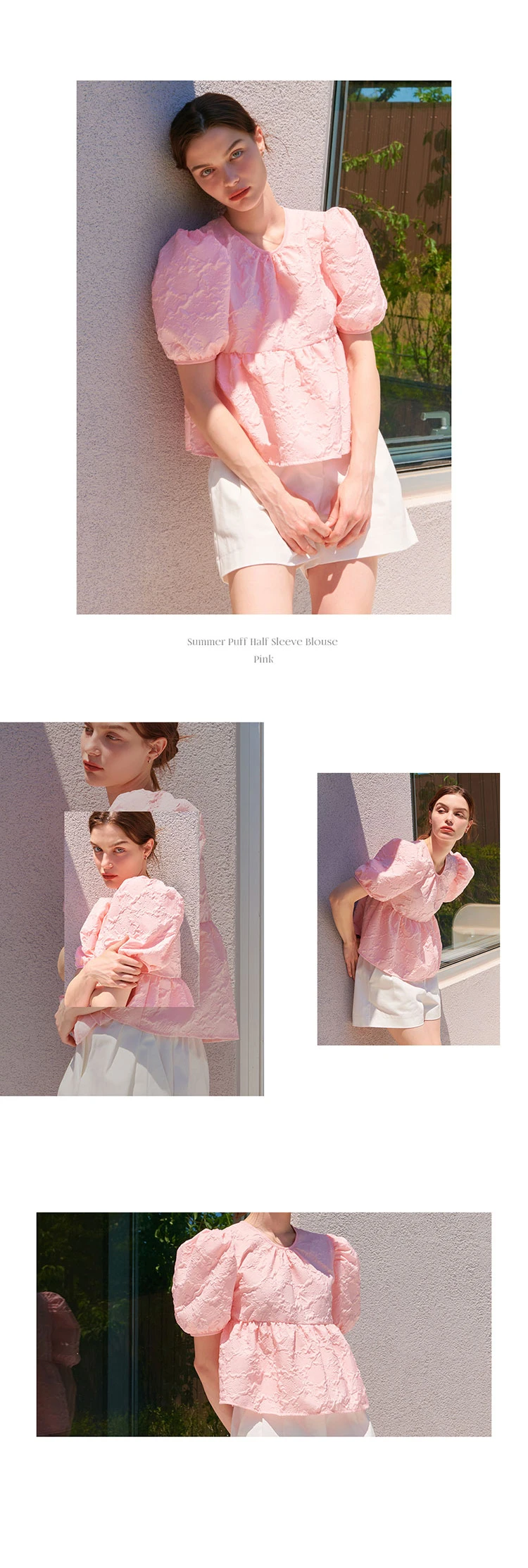 SUMMER PUFF HALF SLEEVE BLOUSE PINK