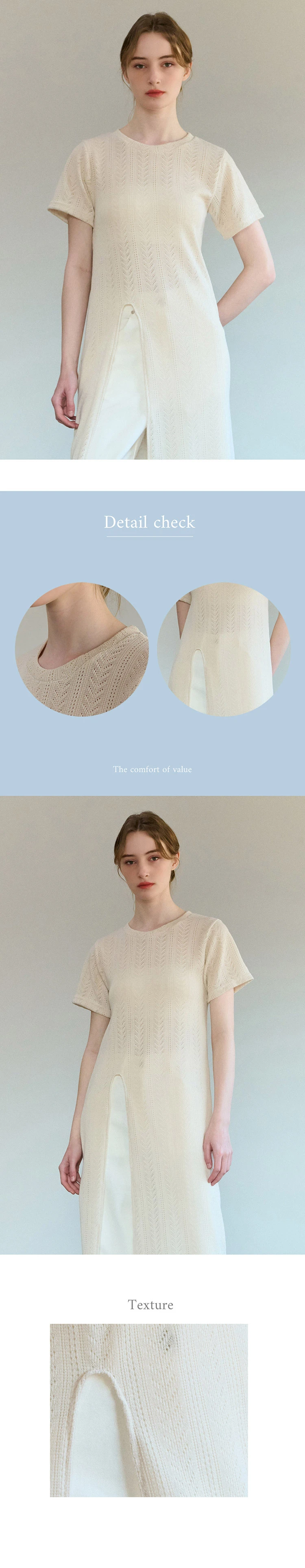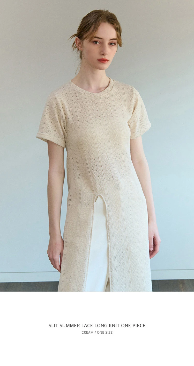 SLIT SUMMER LACE LONG KNIT ONE PIECE CREAM