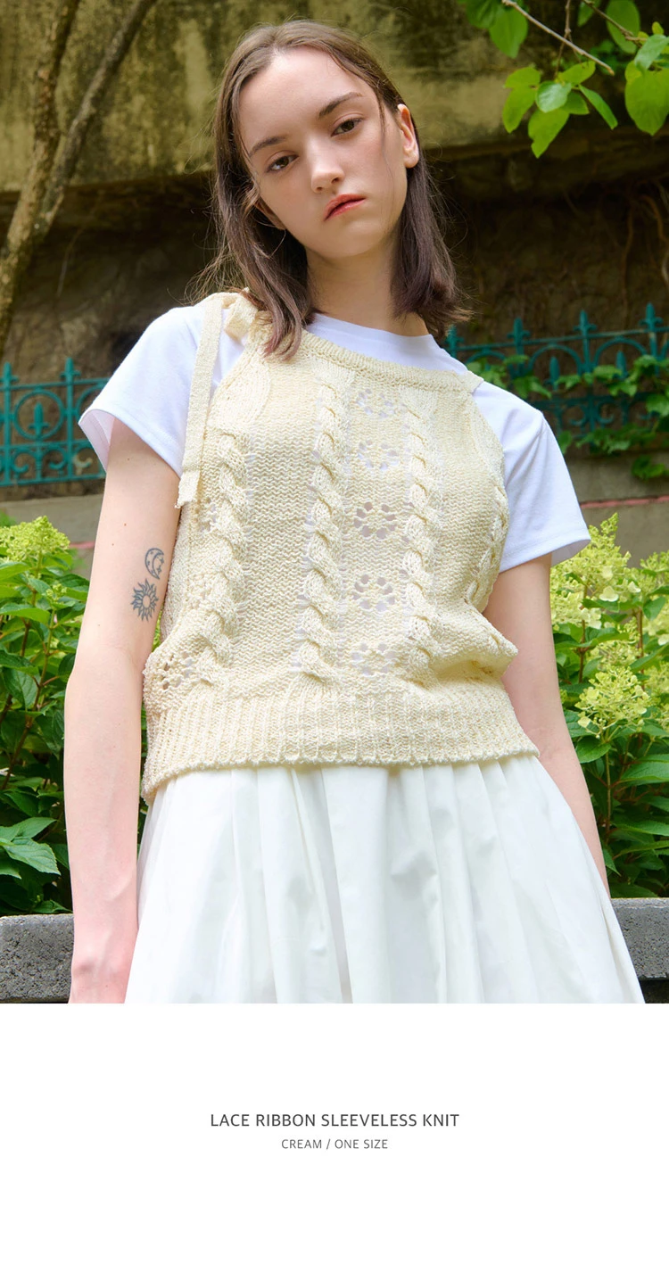LACE RIBBON SLEEVELESS KNIT CREAM