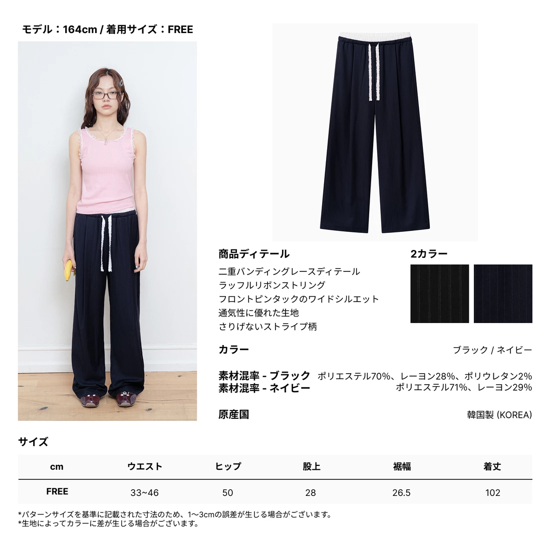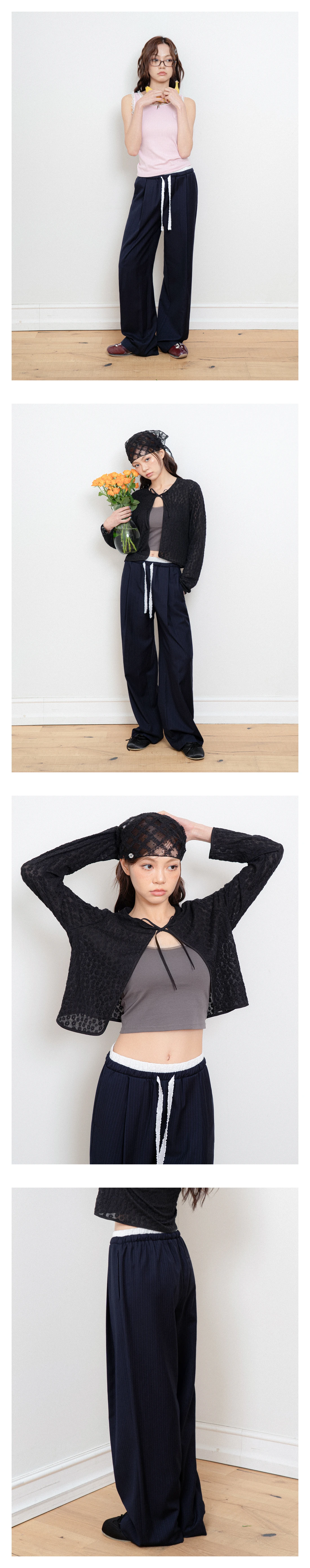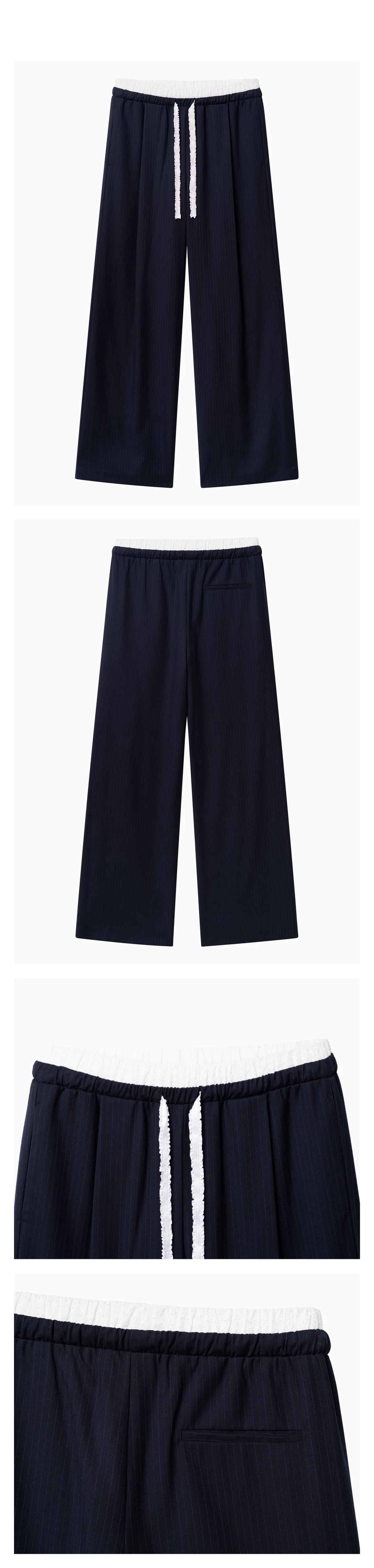 LACE DOUBLE BANDING STRIPE PANTS NAVY