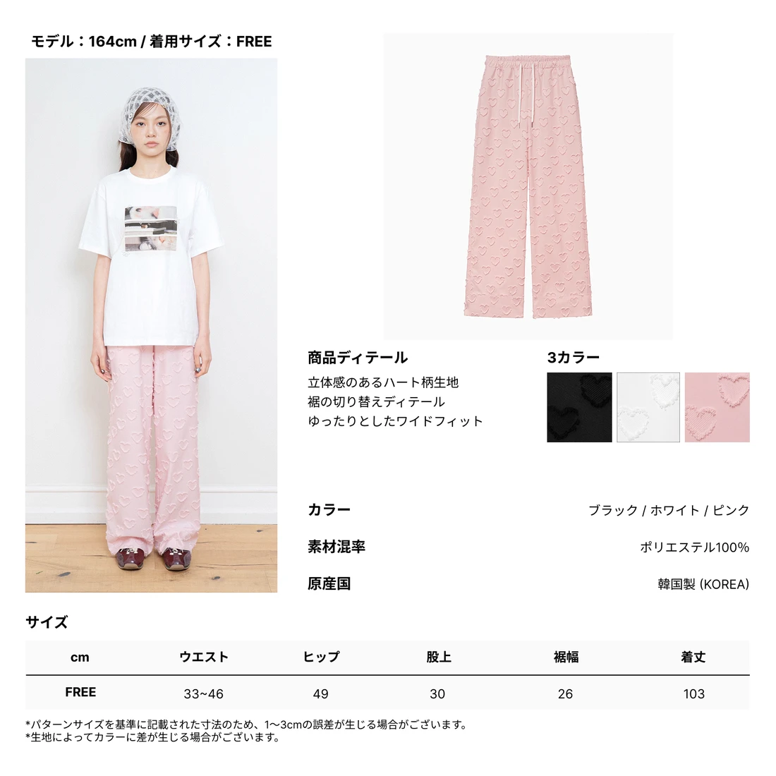HEART BANDING WIDE PANTS PINK