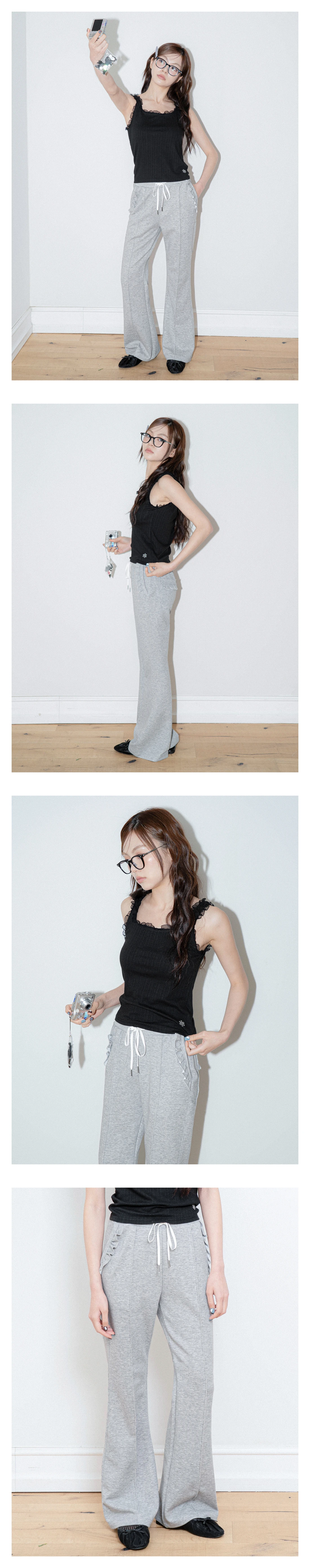 FRILL BOOTCUT BANDING PANTS GRAY