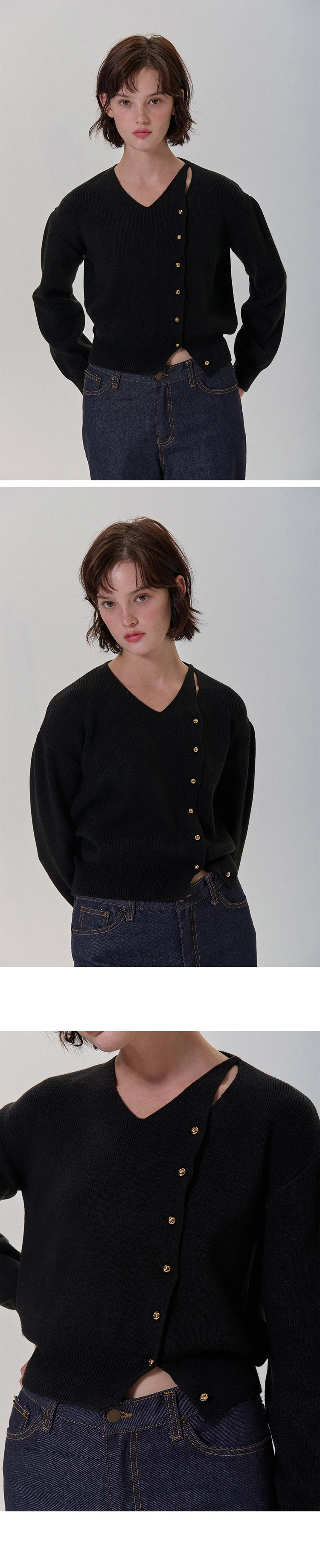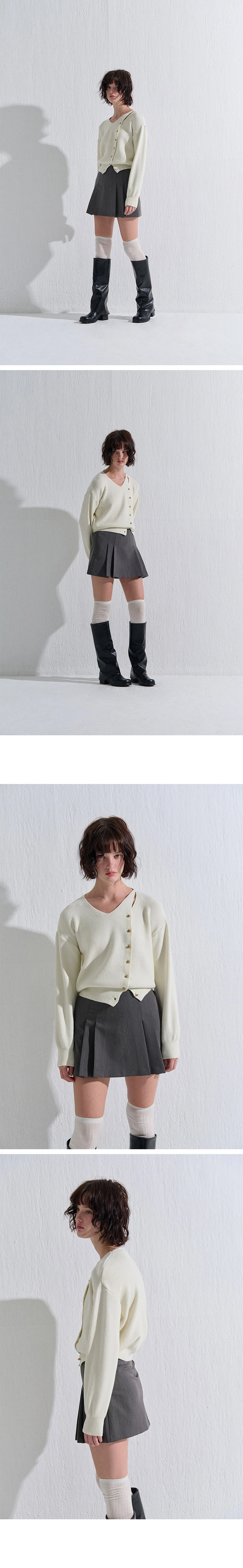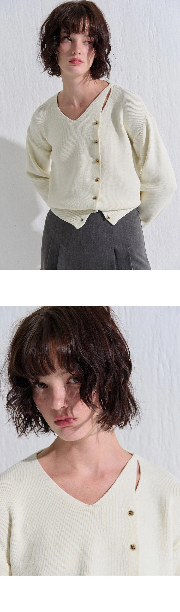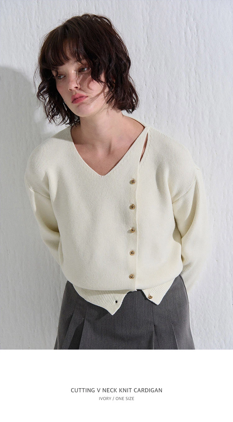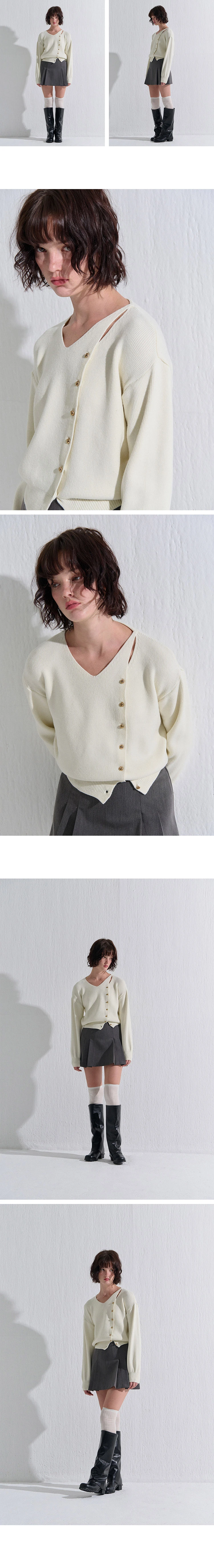 CUTTING V NECK KNIT CARDIGAN IVORY
