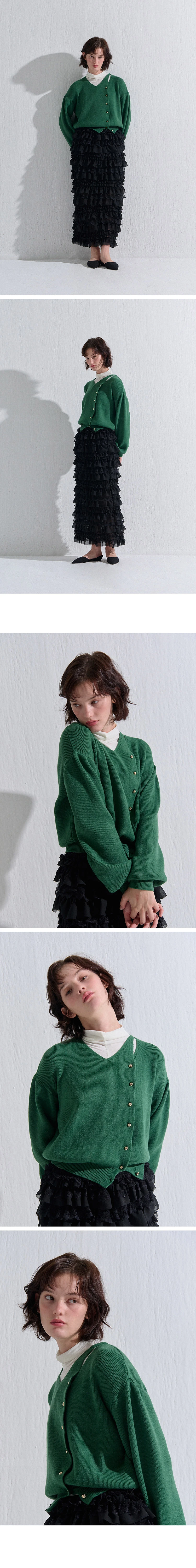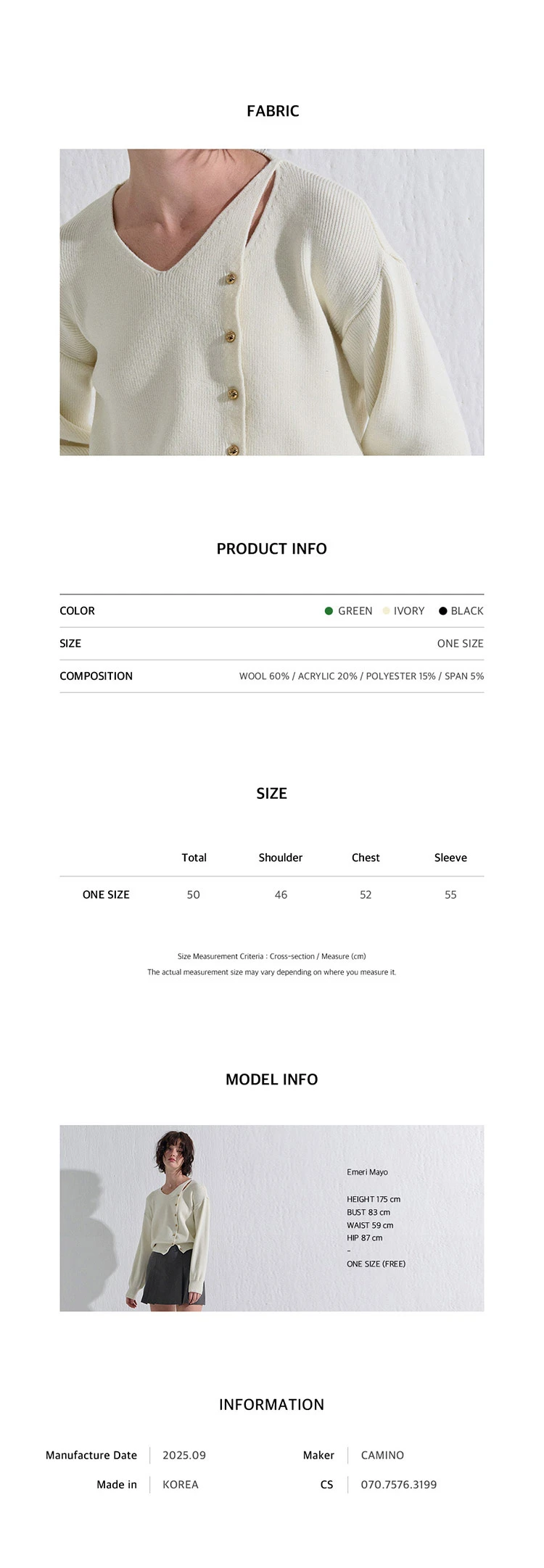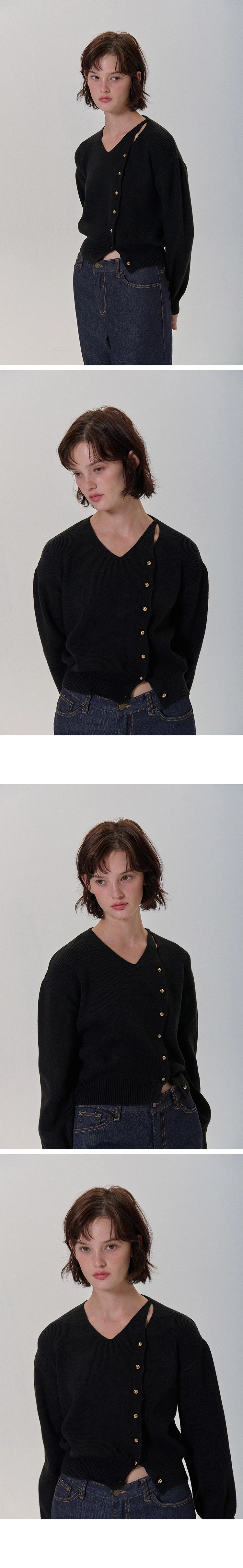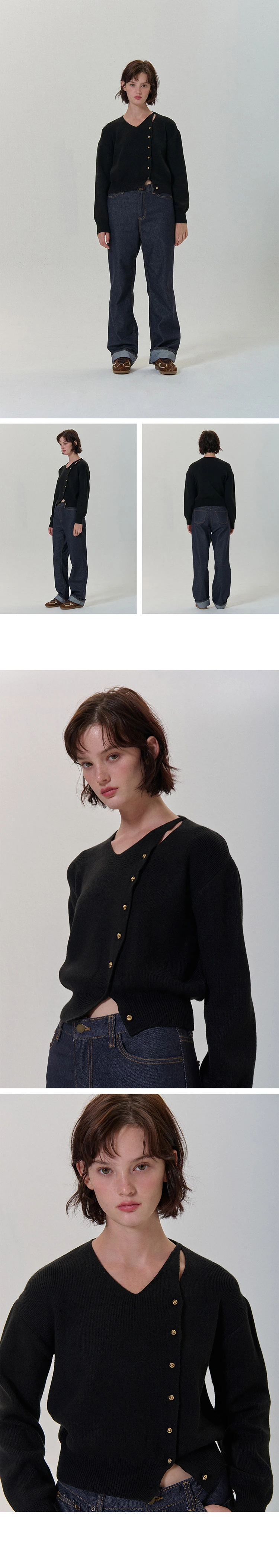 CUTTING V NECK KNIT CARDIGAN IVORY