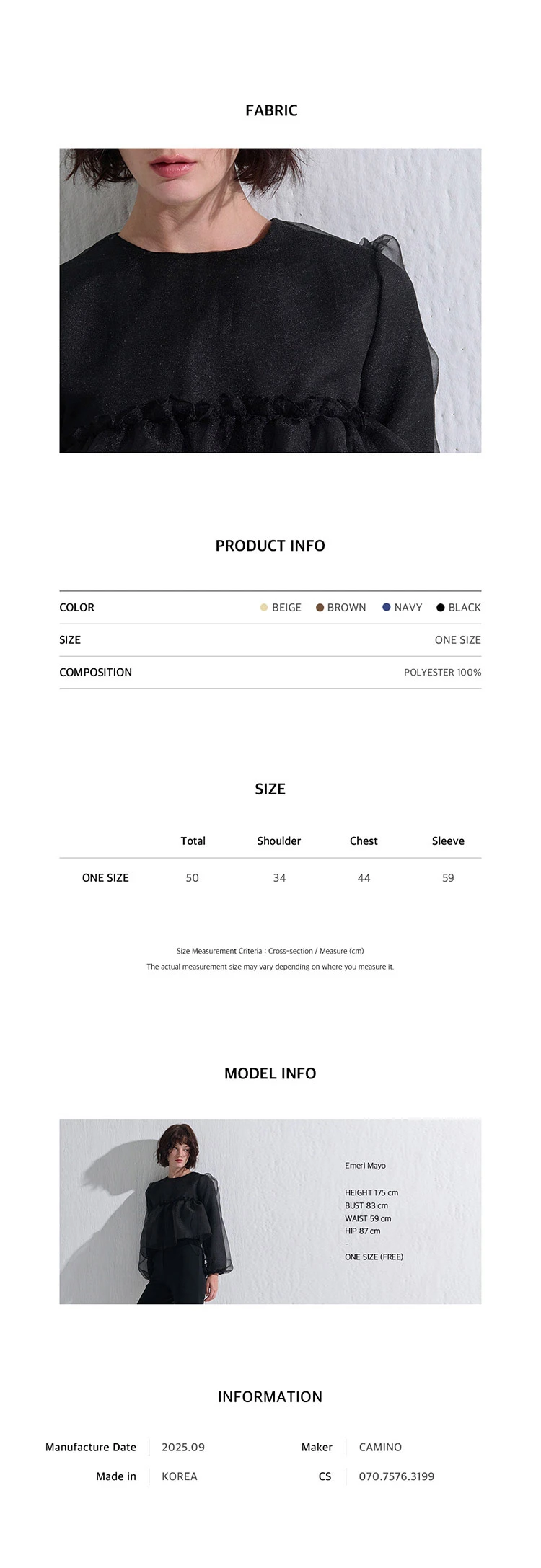 Total : 50cm / Shoulder : 34cm / Chest : 44cm / Sleeve : 59cm
