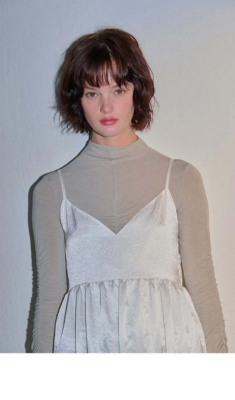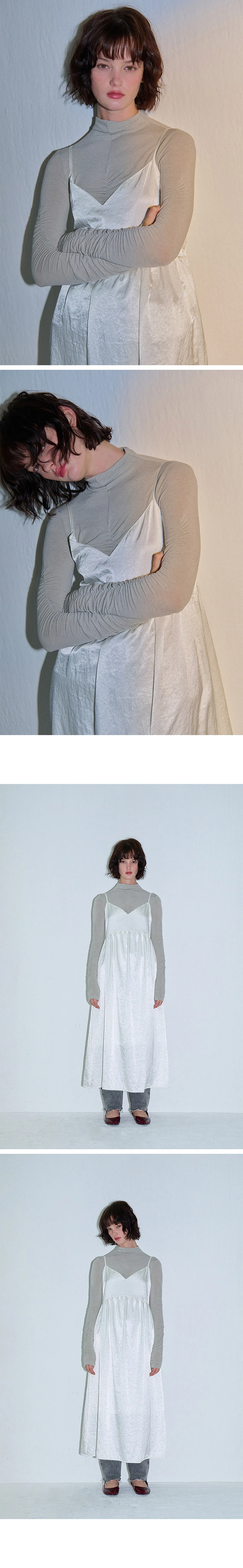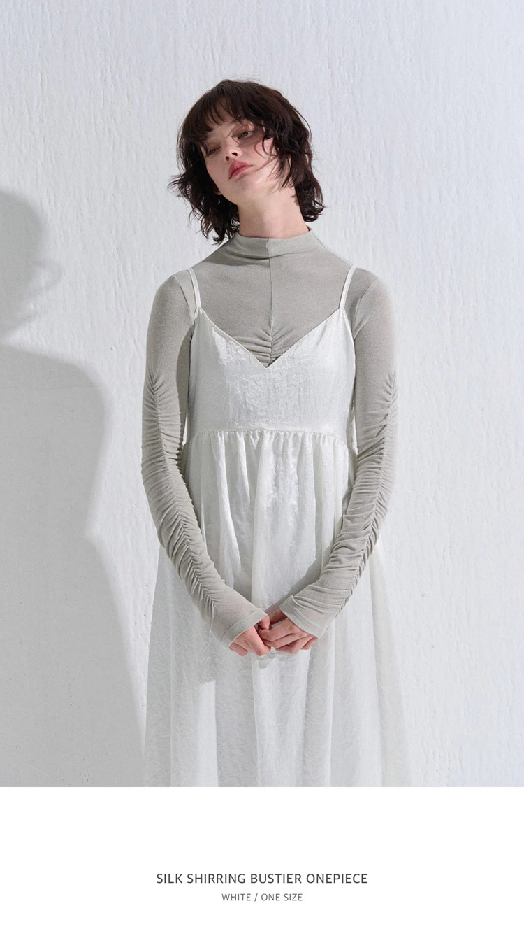 SILK SHIRRING BUSTIER ONEPIECE WHITE