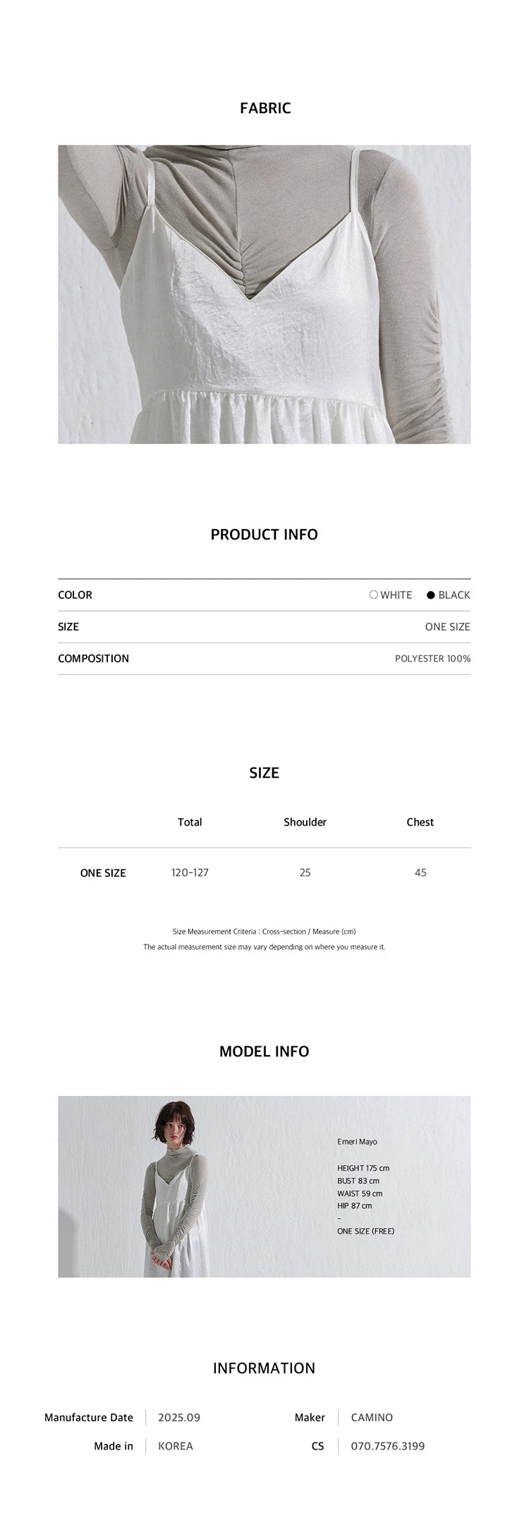 Total : 120-127cm / Shoulder : 25cm / Chest : 45cm