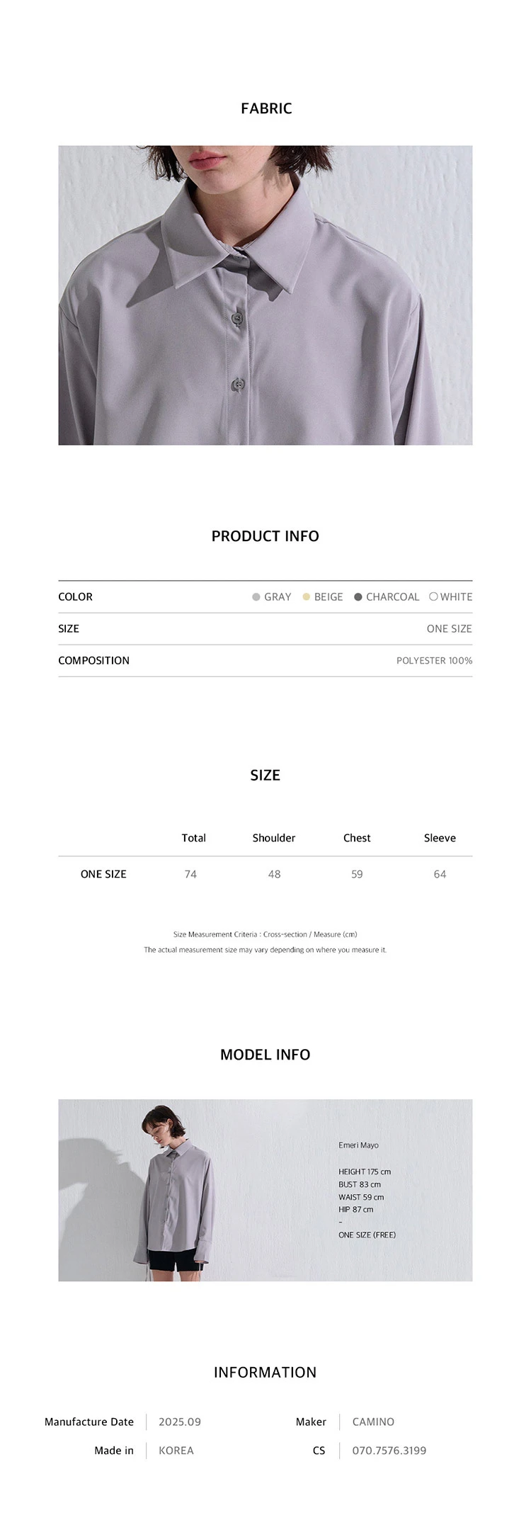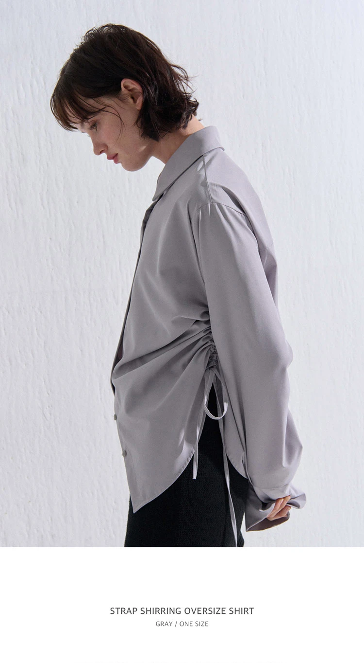 STRAP SHIRRING OVERSIZE SHIRT GRAY